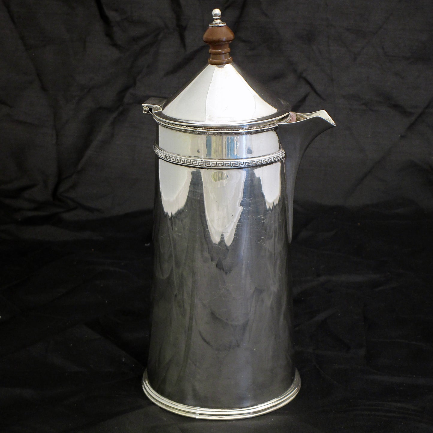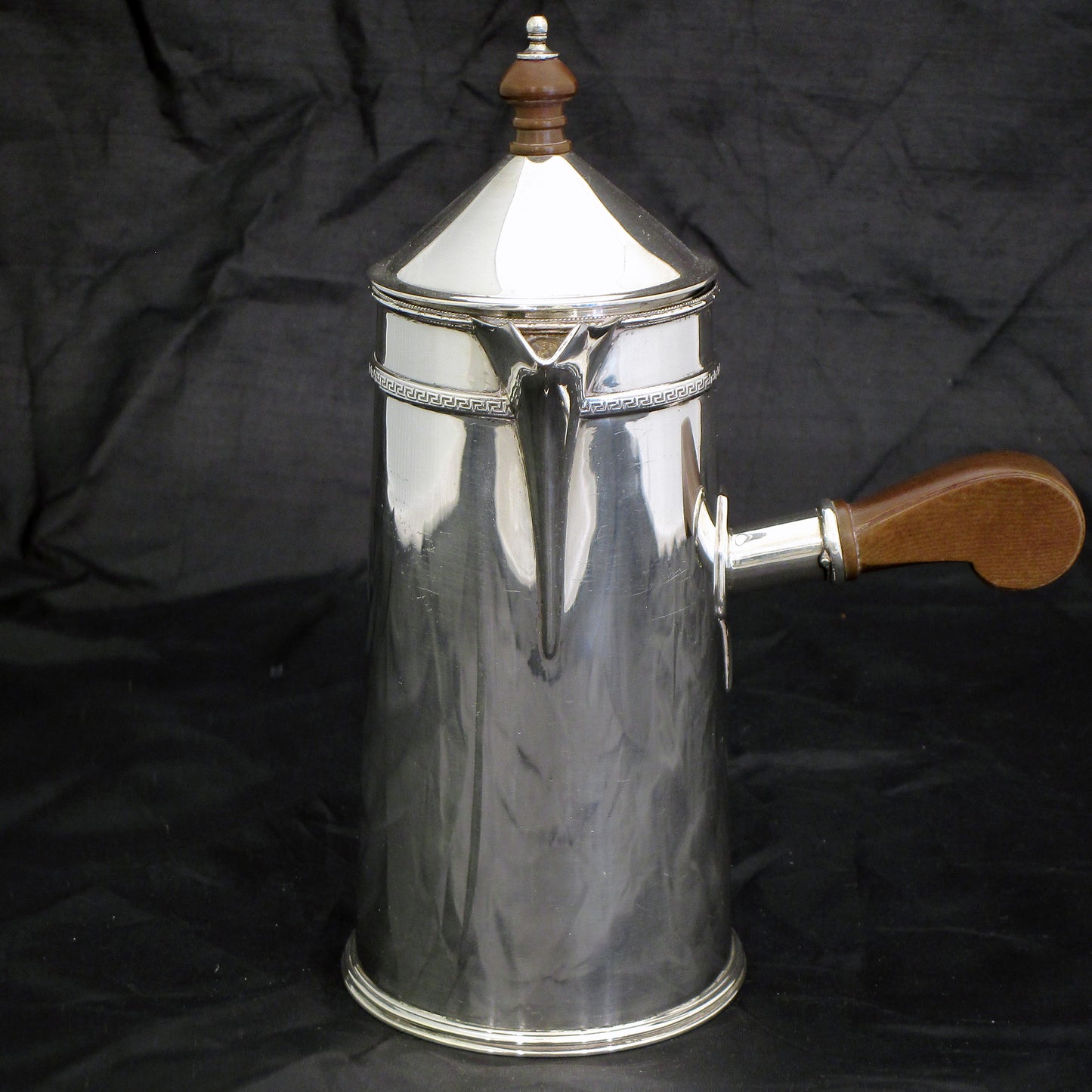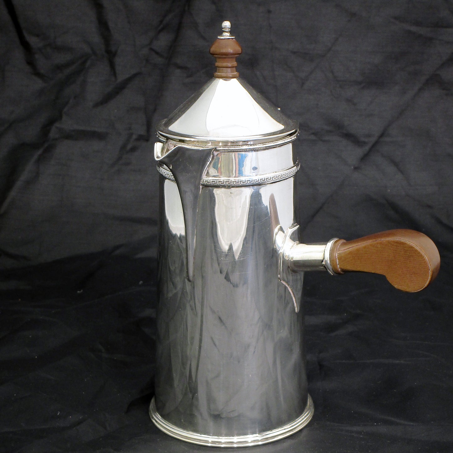 An elegant classic design art deco sterling silver side handled coffee/chocolate pot .
