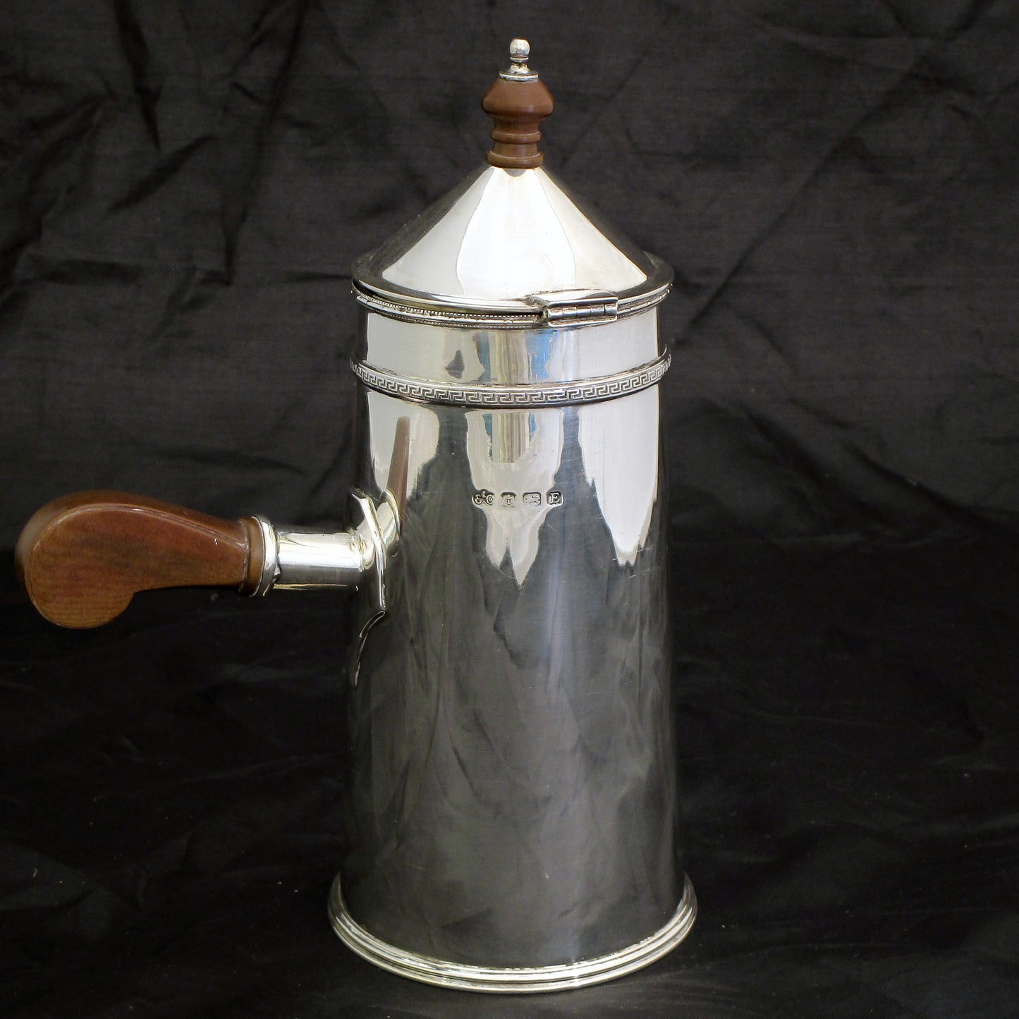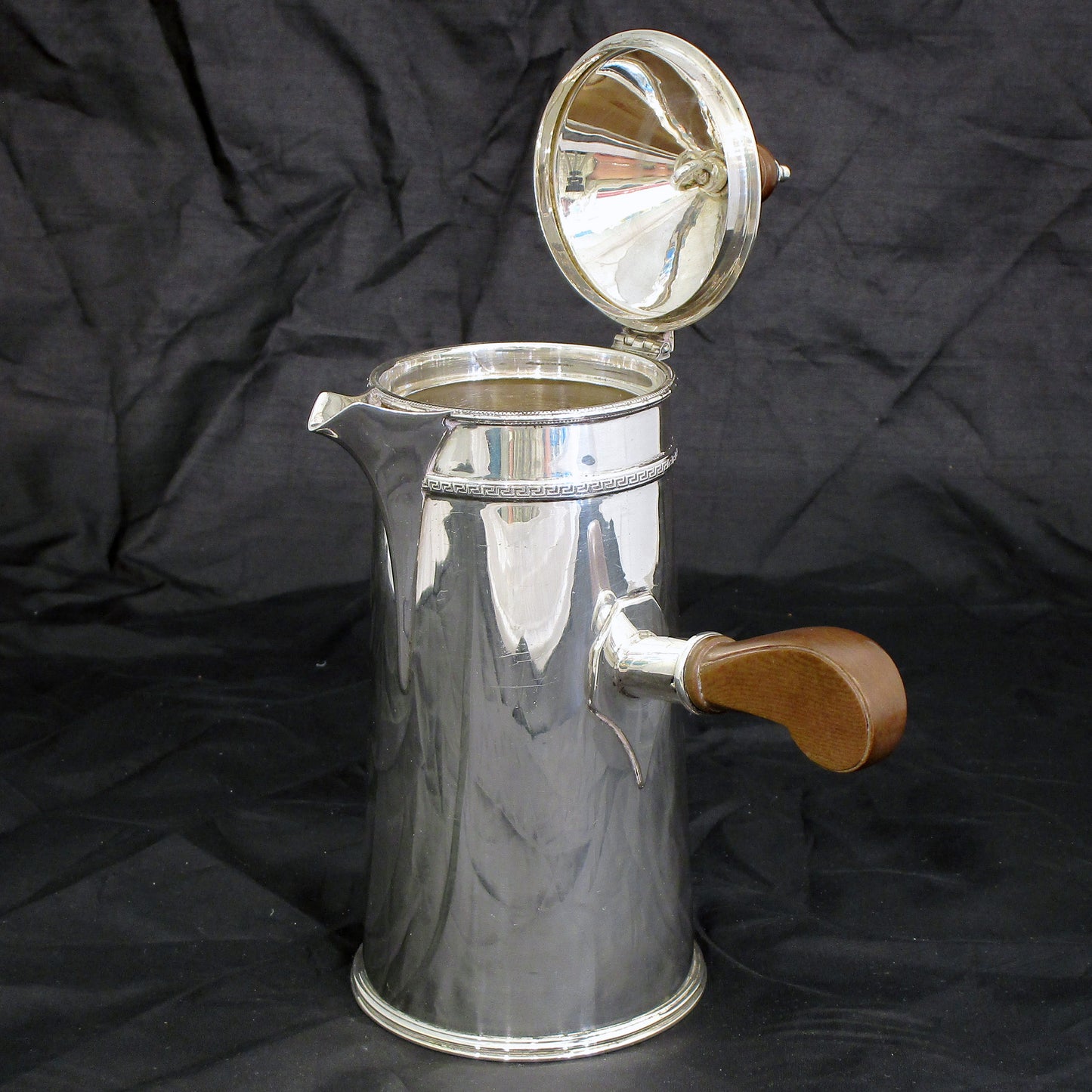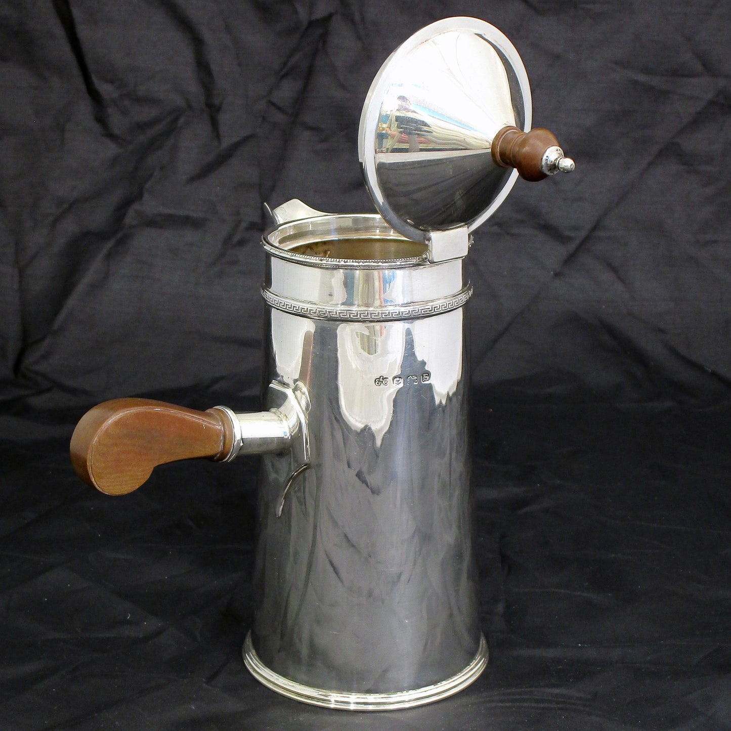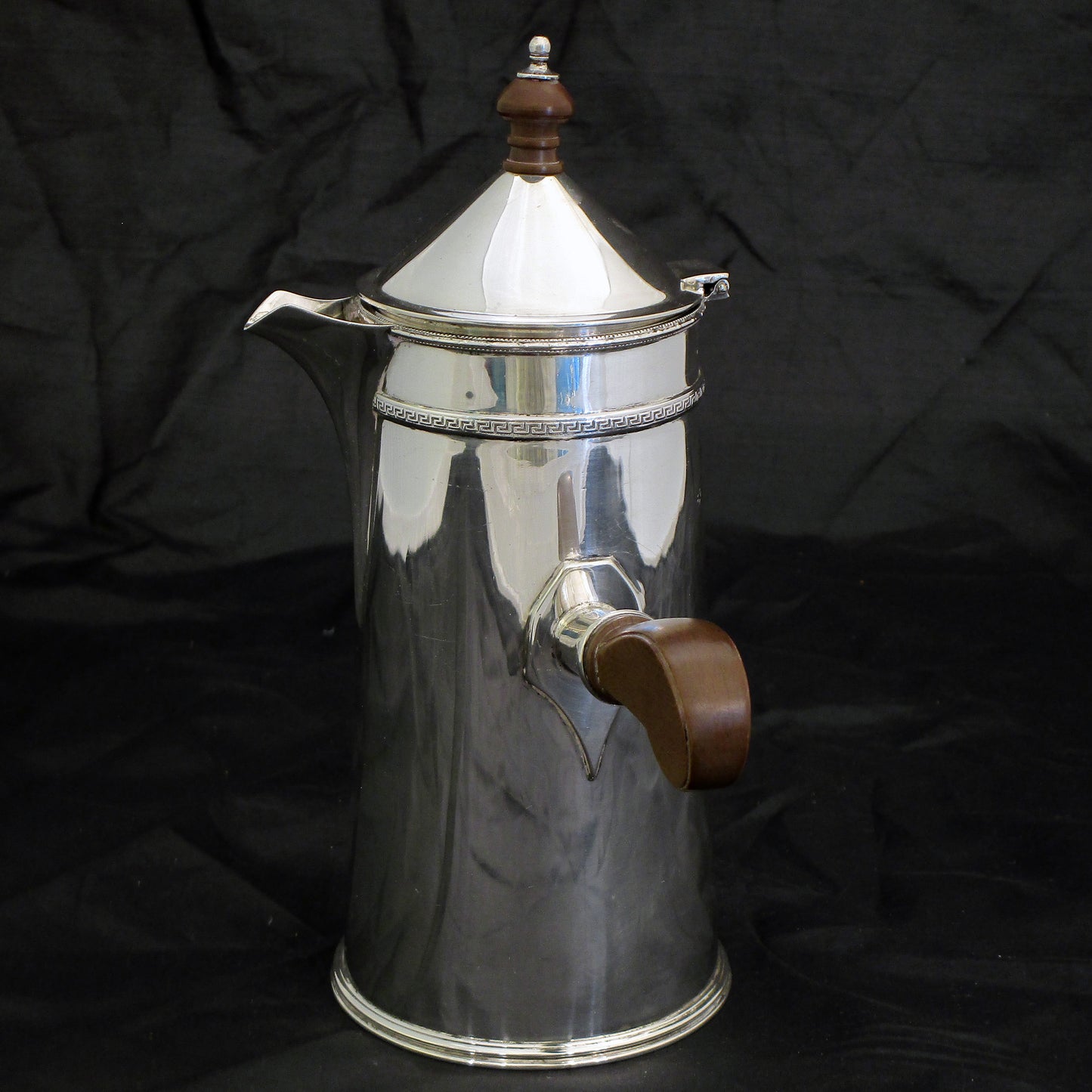 An elegant classic design art deco sterling silver side handled coffee/chocolate pot .